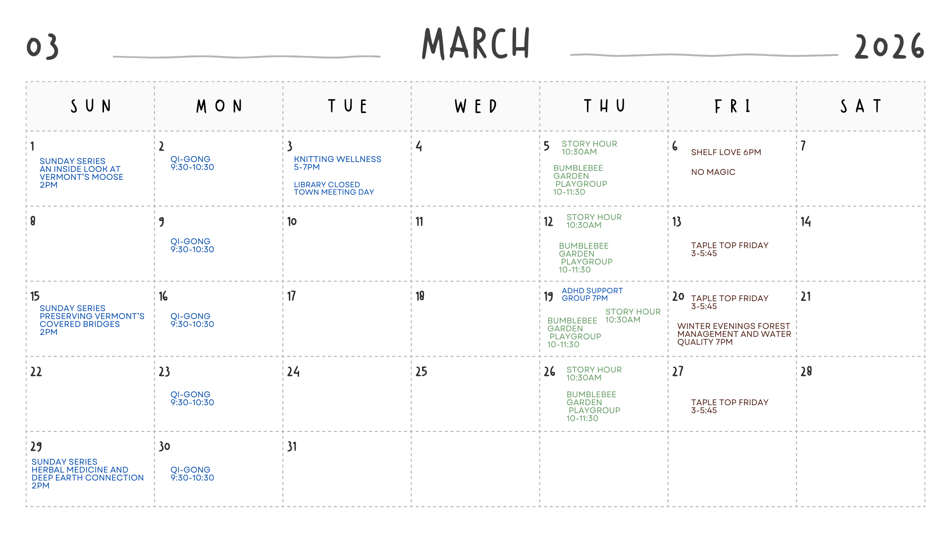 The Tunbridge Public Library is a community space that fosters the spirit of exploration and life long learning, promotes the sharing and appreciation of stories, and supports a diverse and thriving rural community.